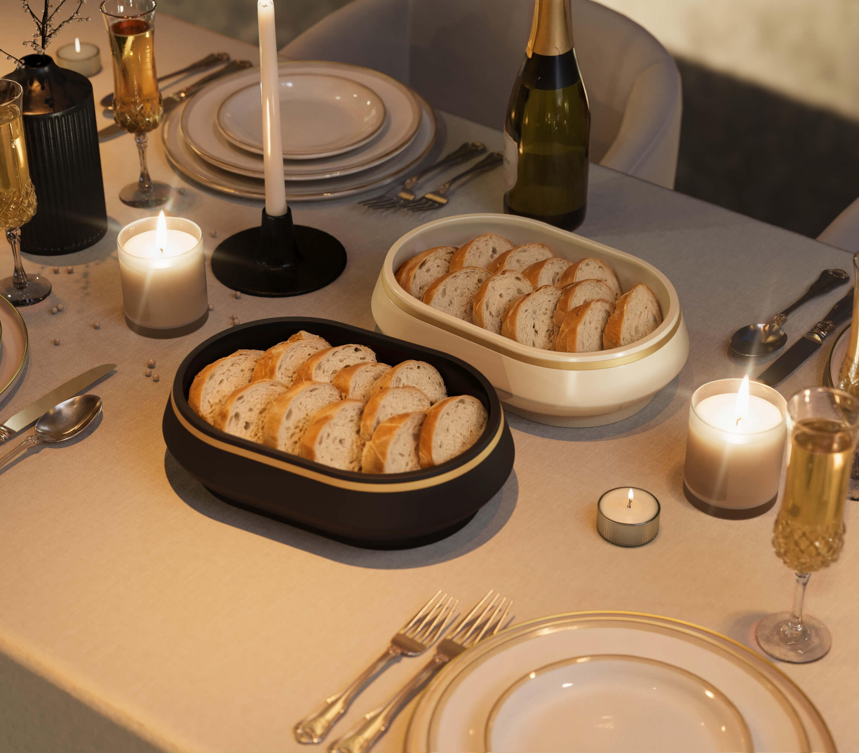 A refined bread warmer designed to keep bread warm beautifully at the dinner table.